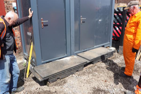 13. Work is continuing on the installation of a signal lever frame at Scruton Signal Box.